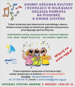 konkurs „Piosenka o Gminie Giżycko” Główna nagroda 1,500 zł