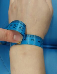 Słuchacze 1 technik masażysta podczas zajęć z pracowni fizjoterapii wykonują badania linijne długości i obwodów.