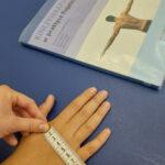 Słuchacze 1 technik masażysta podczas zajęć z pracowni fizjoterapii wykonują badania linijne długości i obwodów.
